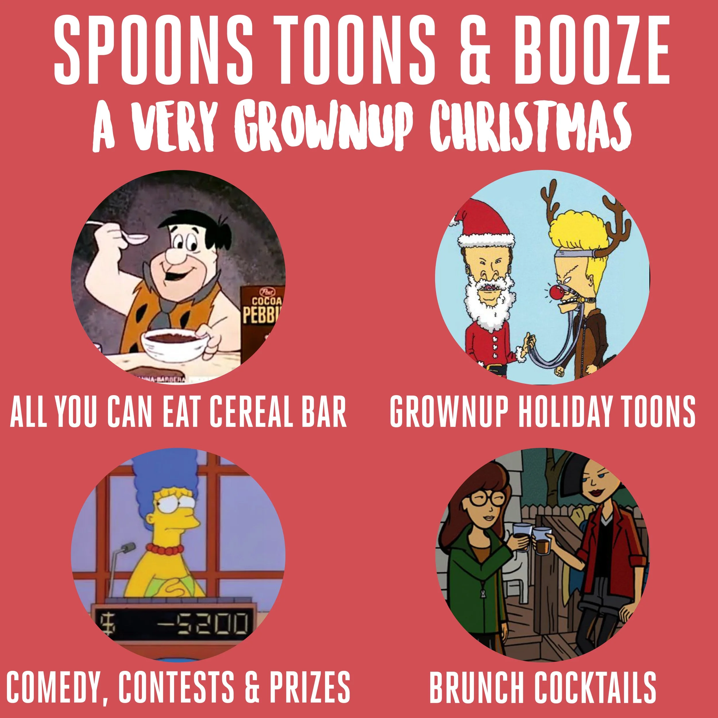 Your Favorite Saturday Morning Cartoons + Booze & Free Cereal + a Special Menu of Holiday Themed Prime Time & Late Nite Cartoons!
